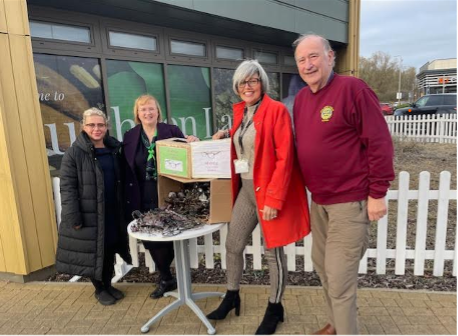 The picture shows (left to right) Casey Wright from Scrivens, Hannah Bishop from Specsavers, Donna French from Rushden Lakes and Richard Massey from The Rotary Club of Rushden.